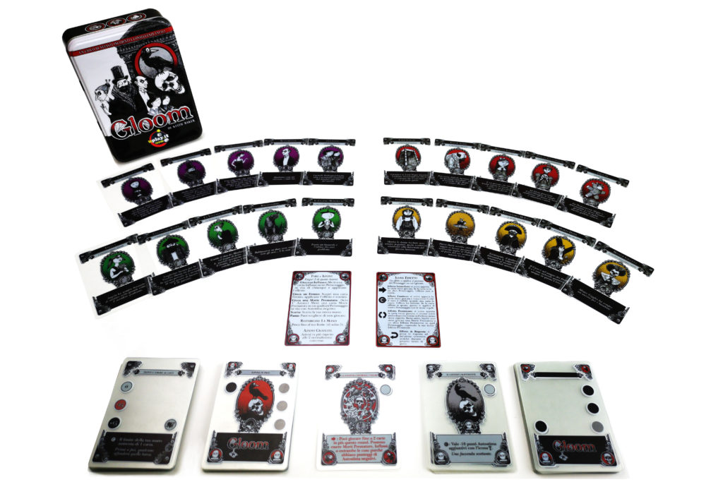 Nel gioco di carte di Gloom, assumerete il controllo del fato di una eccentrica famiglia composta di scherzi della natura e misantropi. Lo scopo del gioco è triste ma semplice: dovete far soffrire ai personaggi le peggiori tragedie prima di passare alla tanta agognata miglior vita. Giocherete orribili carte come Inseguito dai Barboncini o Sfottuto dai Nanetti sui vostri personaggi per abbassare il più possibile il vostro punteggio di Autostima, mentre cercherete di ravvivare le vite dei vostri concorrenti con matrimoni e altri eventi felici che si accumuleranno sui loro punteggi positivi. Il giocatore con il Valore Familiare più basso, vince la partita.